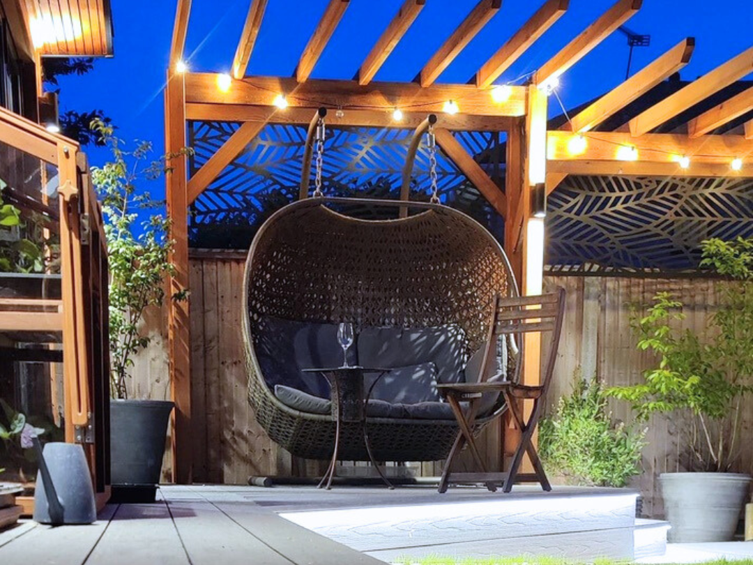 Additional items: Cedar pergola, extended decking area, landscaping